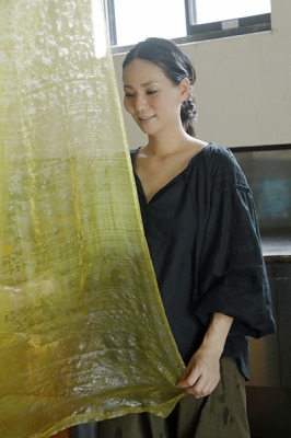 「染司よしおか」は江戸時代から200年以上続く京都の染色工房です。日本に古くから伝わる植物染めの技法を用い、草木や花から美しい色を引き出し、麻、絹、木綿、和紙といった自然素材を染めることを生業としてきました。その四季折々の植物によって生み出される色彩には、自然への深い敬意と鋭い感性が息づいているかのようです。「染司よしおか」は古社寺との関わりも深く、伝統的な染色技法によって東大寺や薬師寺に収められる文化財の復元を行うほか、東大寺修二会に用いられる造花の椿を作るための和紙の染色を担うなど、伝統行事を支えてきました。