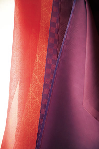 本展では、薬師寺の伎楽装束など古社寺の伝統行事にかかわる復元作品や『源氏物語』の衣装の再現作品などを通して、「染司よしおか」の仕事を辿ります。そして、その歩みを引継ぎ、植物染めによる色彩の美しさを探求しながら染色の新たな可能性を見つめる六代目・吉岡更紗の取組みをご紹介いたします。